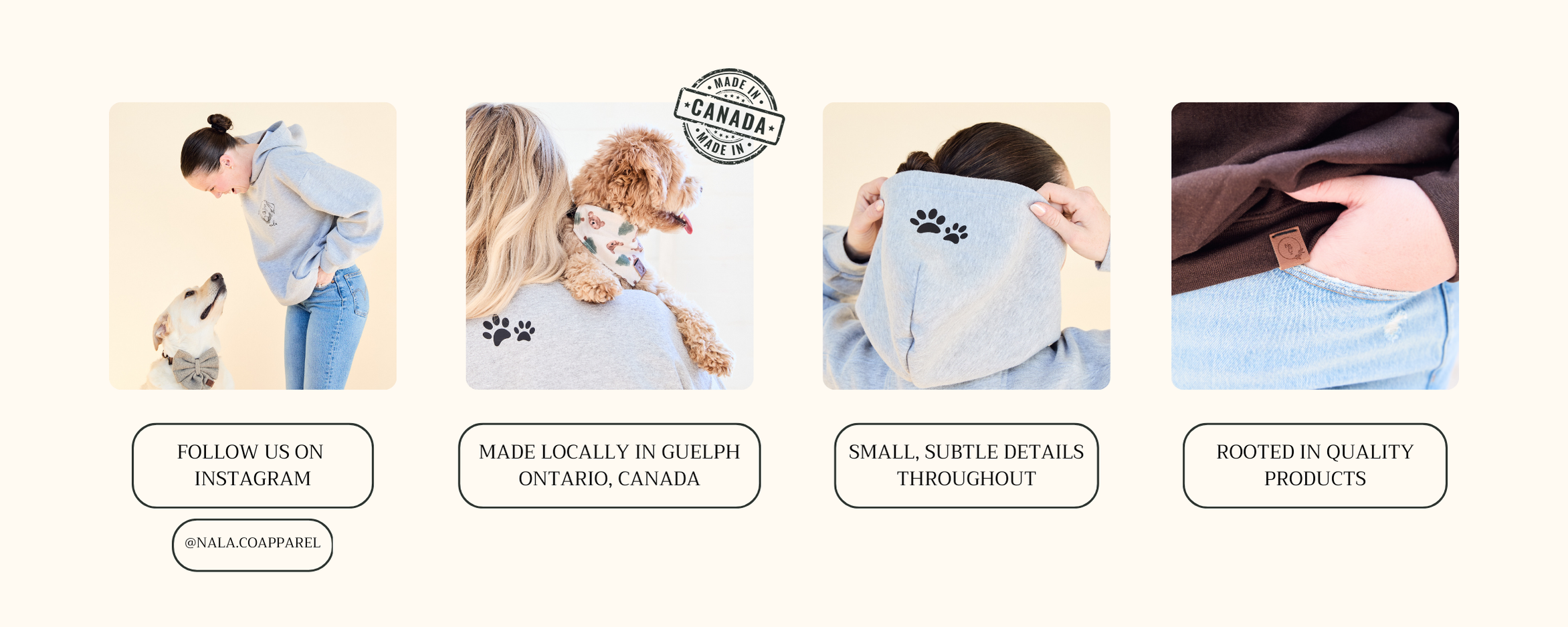 I’m Ashleigh, and this is my girl, Nala - more affectionately known as the CEO of Nala&Co. Our journey began in June 2021, shortly after Nala joined me and my fiancé's life. Like many dog parents, I wanted accessories that were not only modern and aesthetic but also functional for thier unique quirks. When I couldn’t find what we needed, I decided to create them myself!