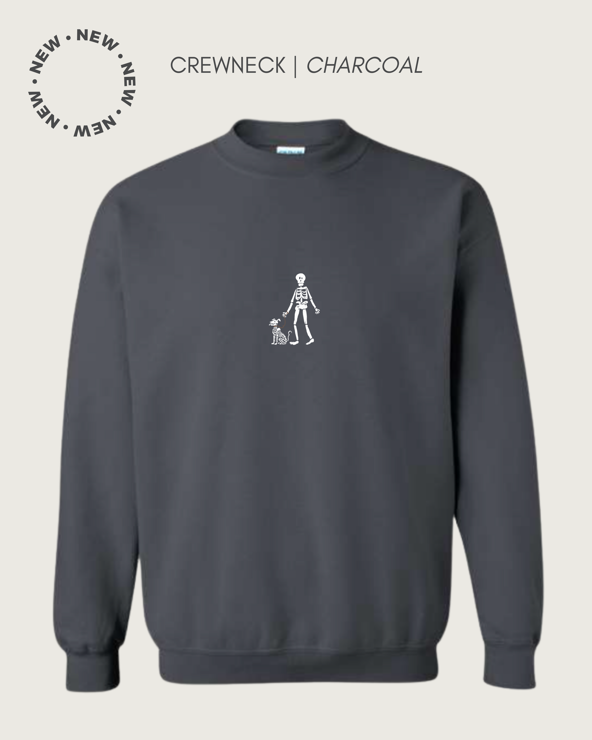 Featuring an original, hand-illustrated, skeleton/dog design & our gorgeous leather tag on the waistband, this heavyweight, cozy crewneck will quickly be your new go-to closet staple this fall!